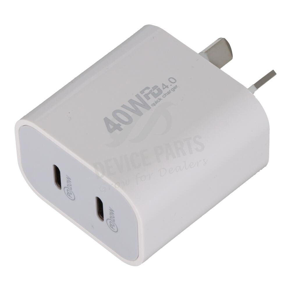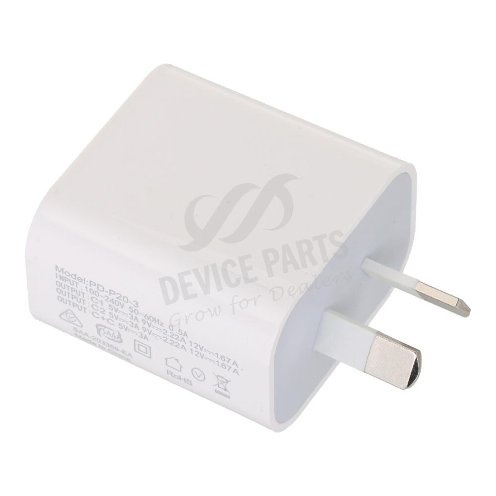 20W Dual Type-C Ports Fast Charger White AU Plug