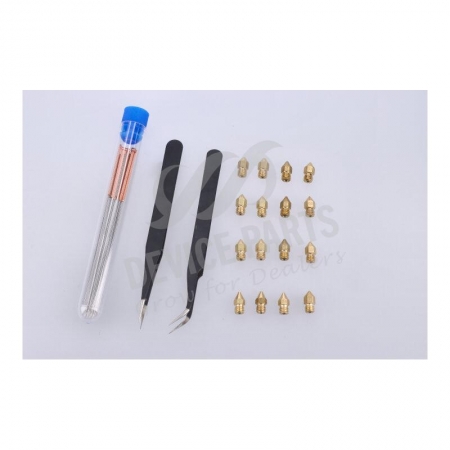 1. MK8 Nozzle: 0.2*2pcs/0.3*3pcs/0.4*3pcs/0.5*2pcs/0.6*2pcs/0.8*2pcs/1.0*2pcs