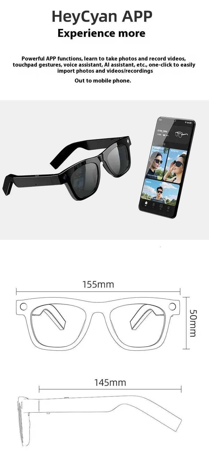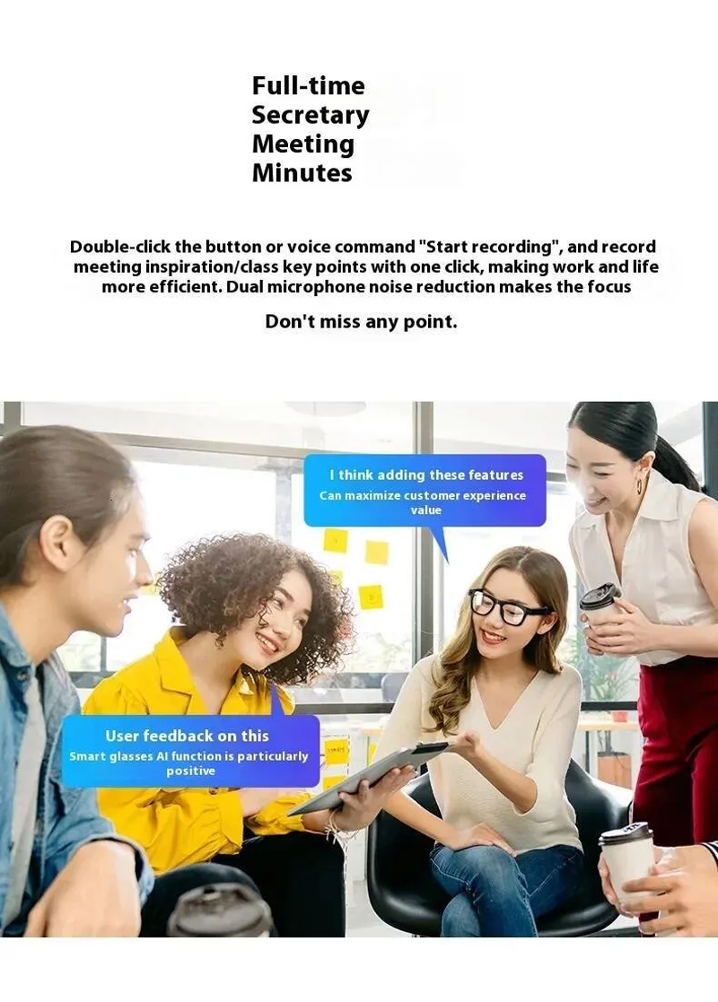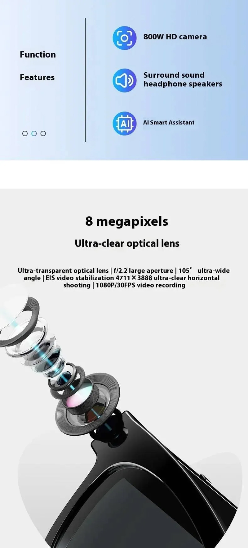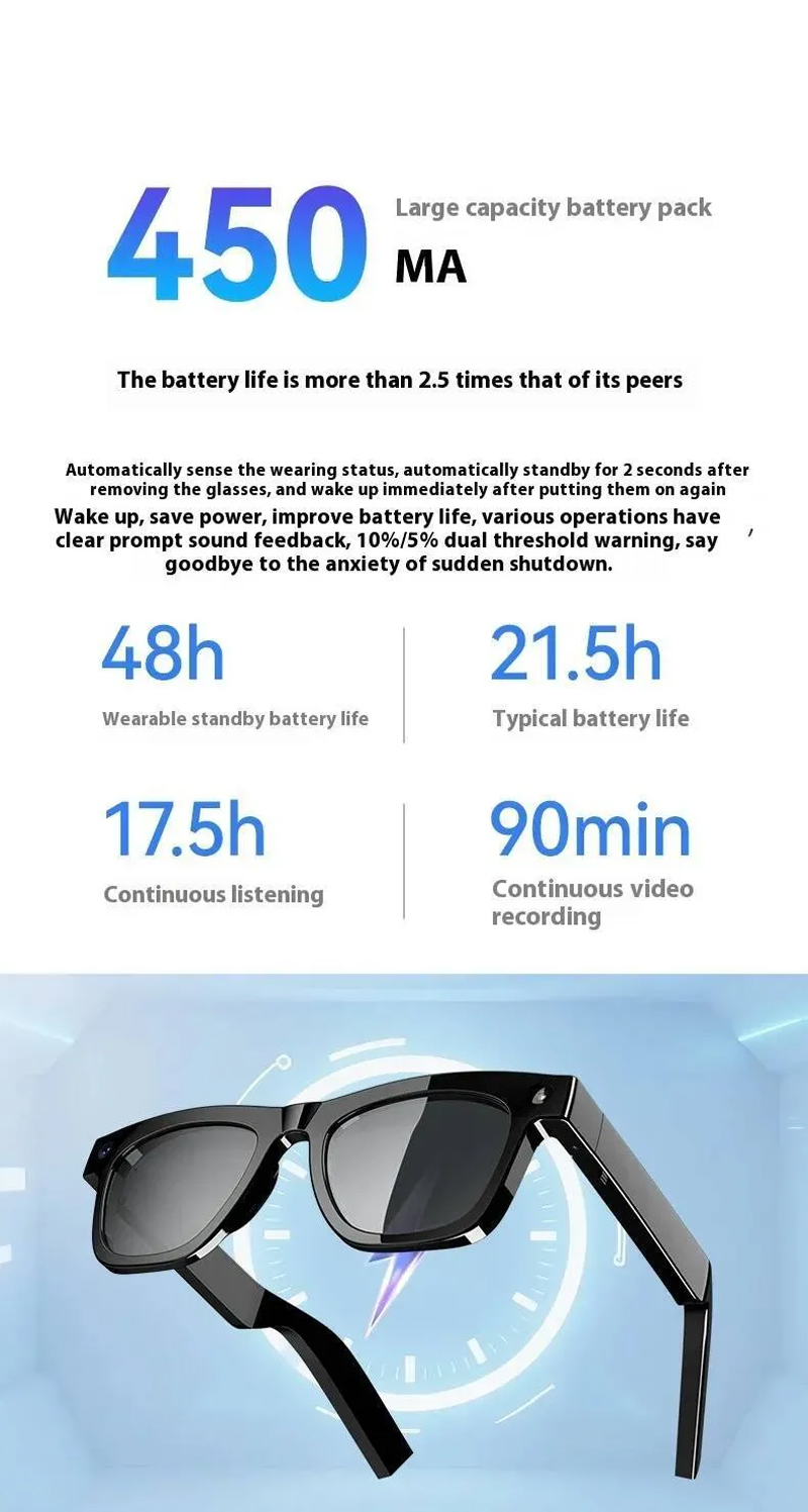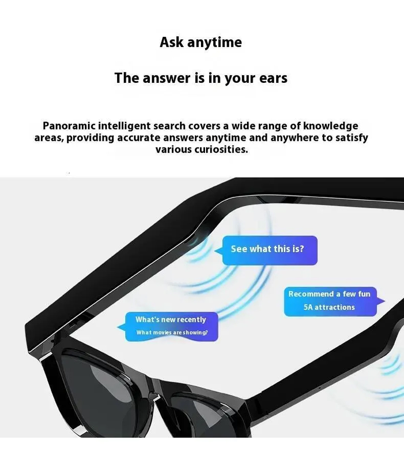 - AI Artificial Multi-function Smart Bluetooth Glasses with Camera Black