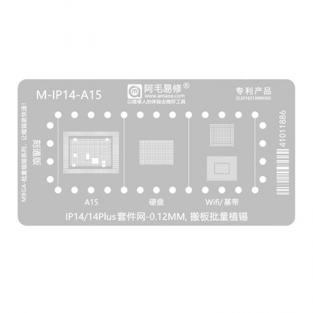 Amaoe M-IP14-A15 0.12MM CPU/Hard Disk/WiFi/Baseband BGA Reballing Stencil for iPhone 14/14Plus