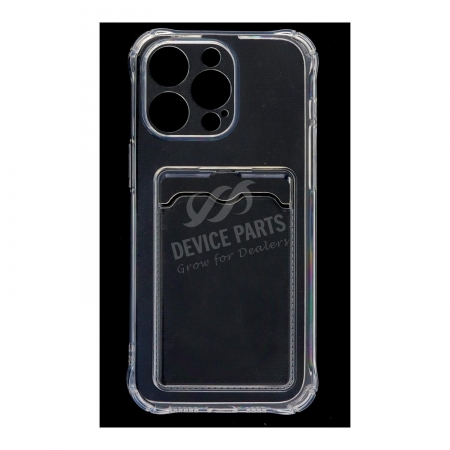 Anti-Shock Clear Phone Case with Card Holder for iPhone 15 Pro Max Transparent