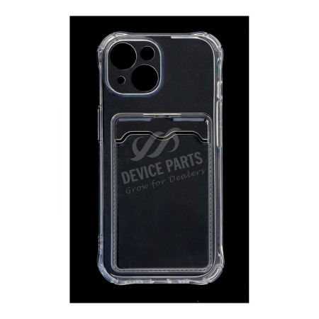 - Anti-Shock Clear Phone Case with Card Holder for iPhone 15 Transparent