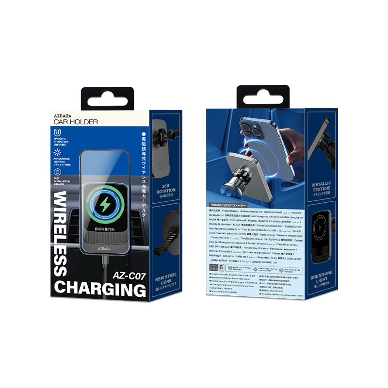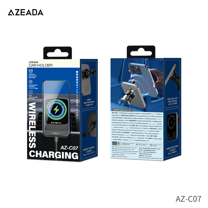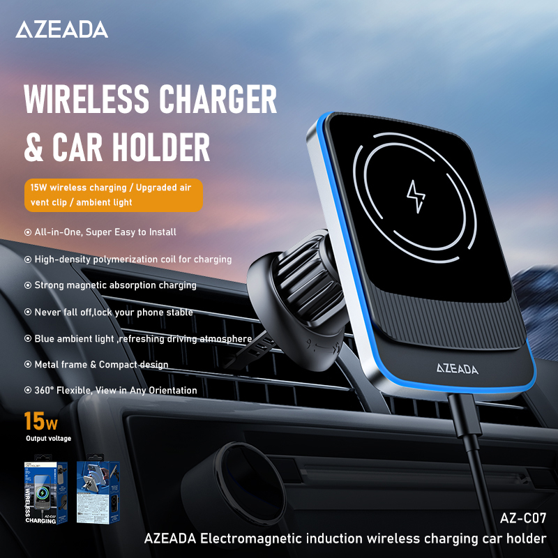 Azeada 15W 360° Rotation Electromagnetic Induction Wireless Charging Car Holder Black CE/ROHS/FCC Certified