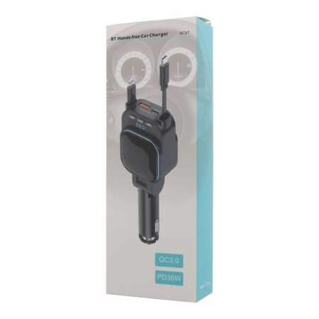 BC97 Dual Retractable Cable Car Charger with Automobile Bluetooth MP3 Player