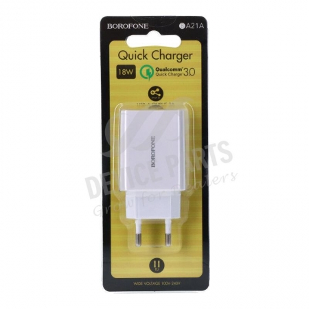 1 x BOROFONE 18W BA21A USB QC3.0 Quick Charger White EU Plug