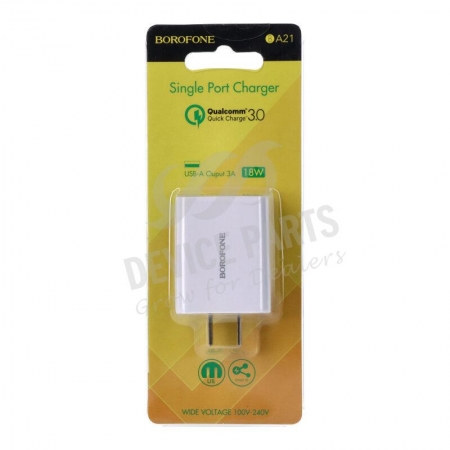 1 x BOROFONE 18W BA21 USB QC3.0 Quick Charger White US Plug