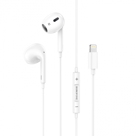 BOROFONE BM30 Max 1.2M Lightning Acoustic Wire Control Earphone with Mic White