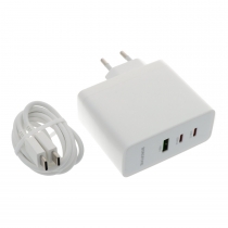 BOROFONE BN11 Type-C Three Port PD100W Charger with Type-C to Type-C EU Adapter White