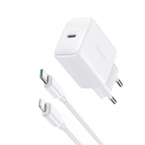 JOYROOM JR-TCF20 20W Type-C PD Fast Charger with 1M Type-C to Lighting Date Cable Eu plug CE/FCC/RoHS Certified White