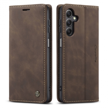 - CaseMe-013 TPU Business Style Vintage Matte Horizontal Flap Leather Case for Samsung Galaxy A24 4G A245/A25 A256 Coffee
