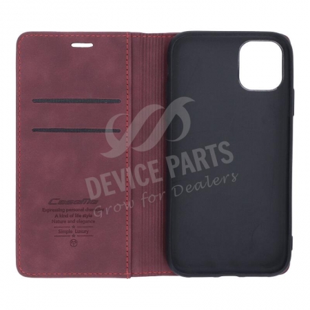 1 x CaseMe-013 PU + PC Business Style Vintage Matte Horizontal Flap Leather Case for iPhone 11 Dark Red