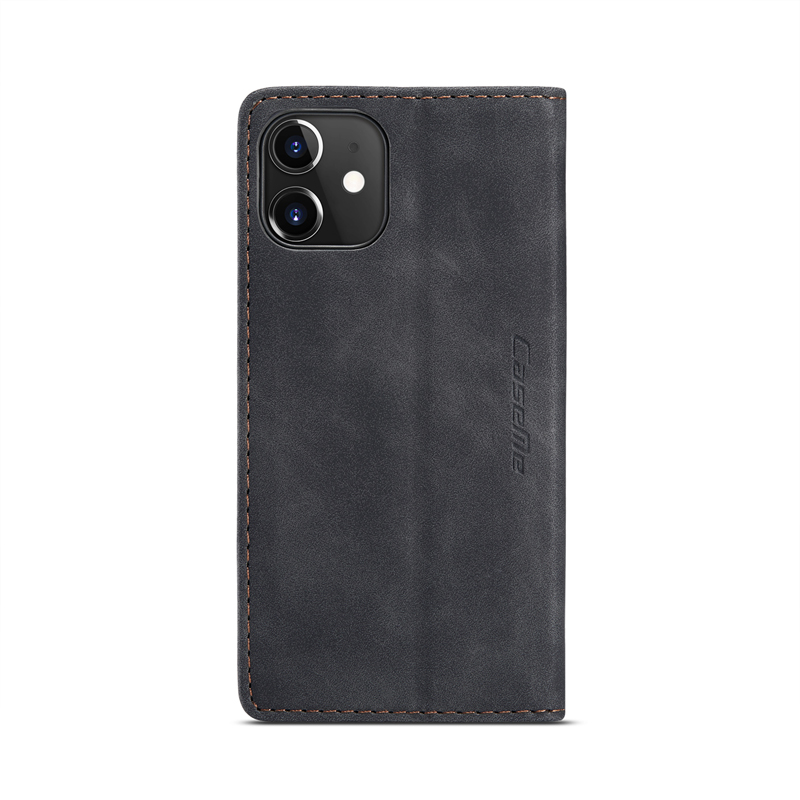 CaseMe-013 TPU Business Style Vintage Matte Horizontal Flap Leather Case for iPhone 12 Mini Black