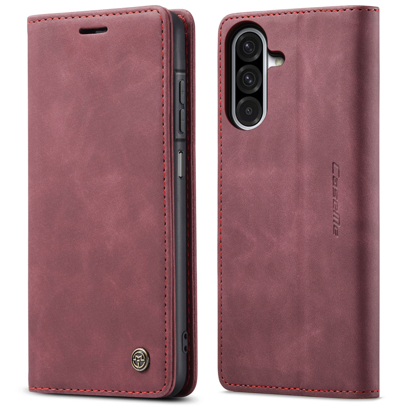 CaseMe-013 TPU Business Style Vintage Matte Horizontal Flap Leather Case for Samsung Galaxy A17 5G/A17 4G Burgundy