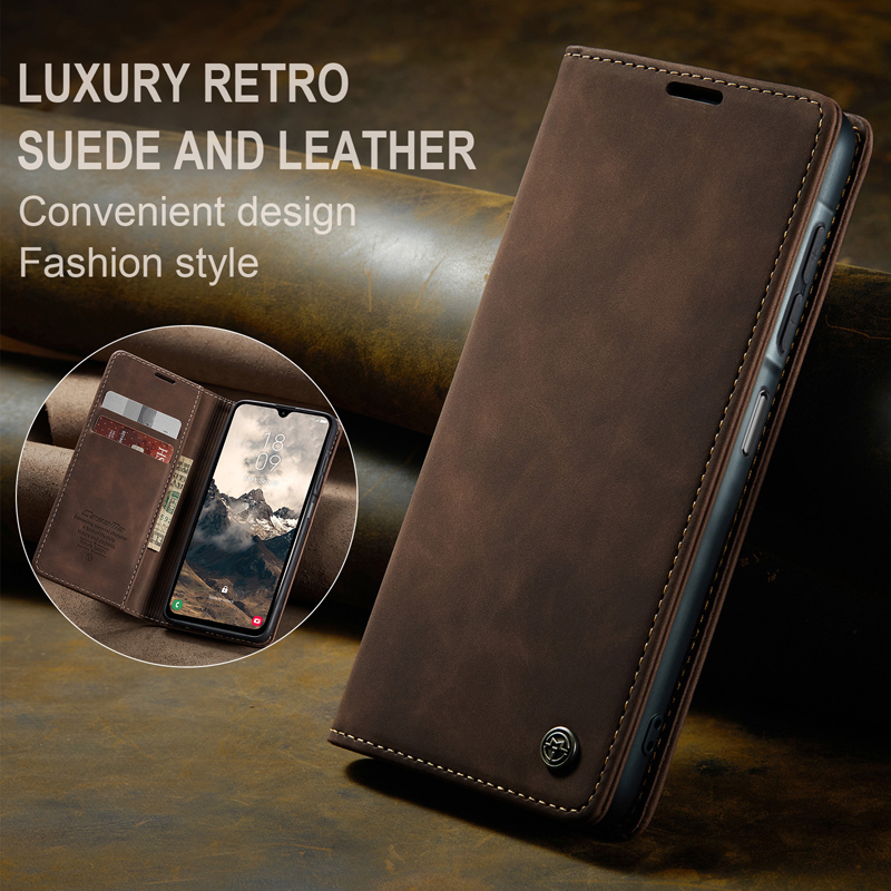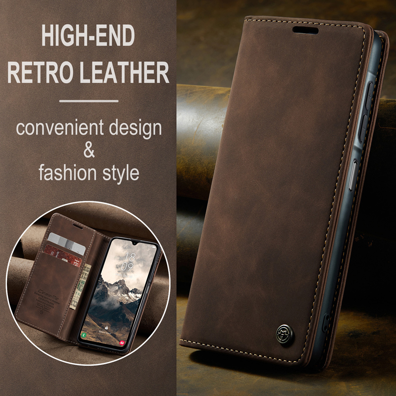 - CaseMe-013 TPU Business Style Vintage Matte Horizontal Flap Leather Case for Samsung Galaxy A17 5G/A17 4G Coffee