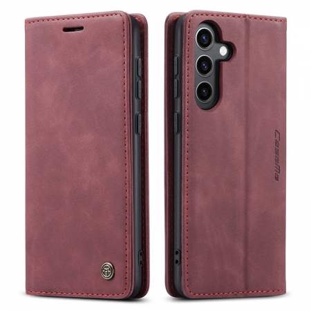 CaseMe-013 TPU Business Style Vintage Matte Horizontal Flap Leather Case for Samsung Galaxy S24 FE Burgundy