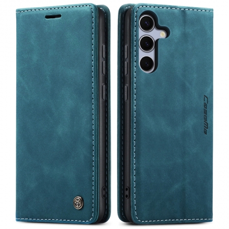 CaseMe-013 TPU Business Style Vintage Matte Horizontal Flap Leather Case for Samsung Galaxy S25 Blue