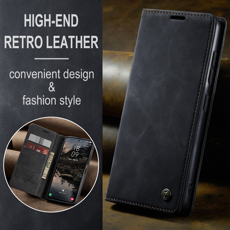 - CaseMe-013 TPU Business Style Vintage Matte Horizontal Flap Leather Case for Samsung Galaxy S25 FE Black