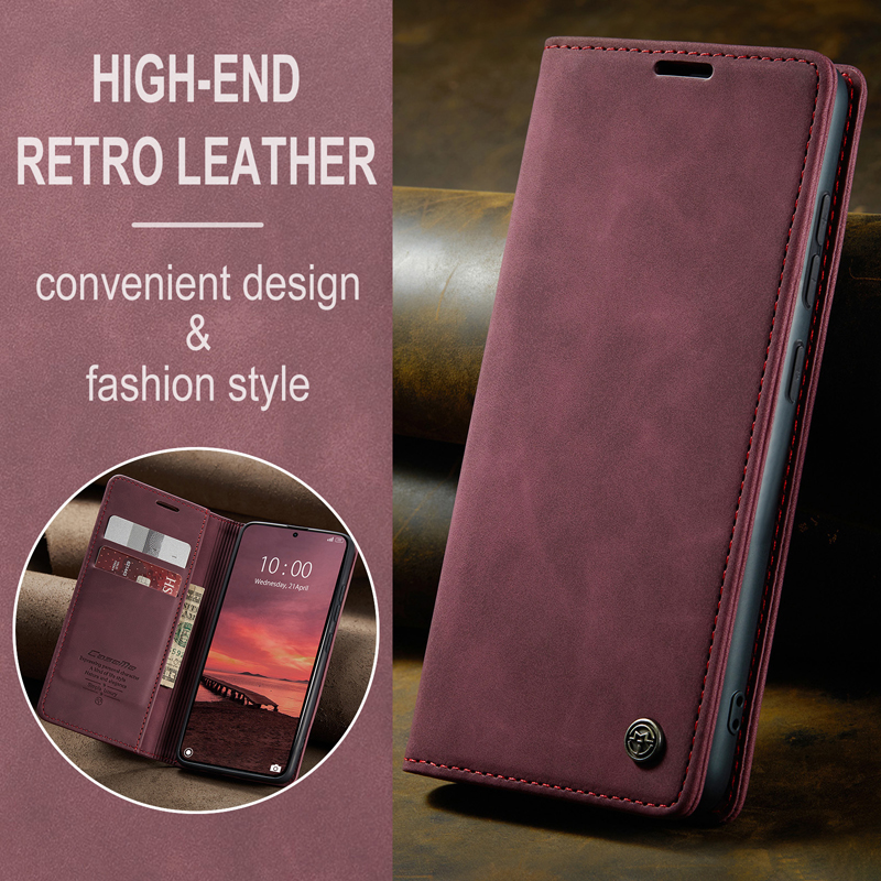 - CaseMe-013 TPU Business Style Vintage Matte Horizontal Flap Leather Case for Samsung Galaxy S26 Burgundy