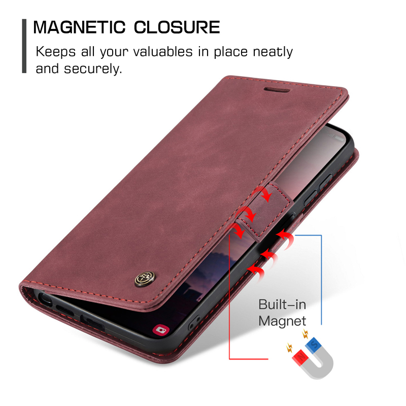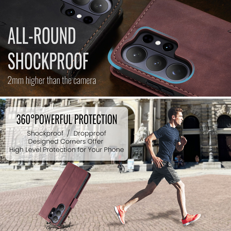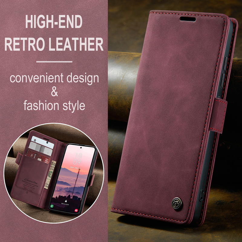 - CaseMe-013 TPU Business Style Vintage Matte Horizontal Flap Leather Case for Samsung Galaxy S26 Ultra Burgundy