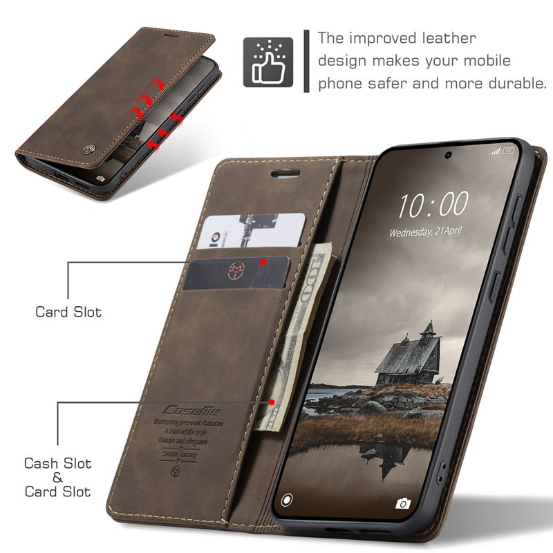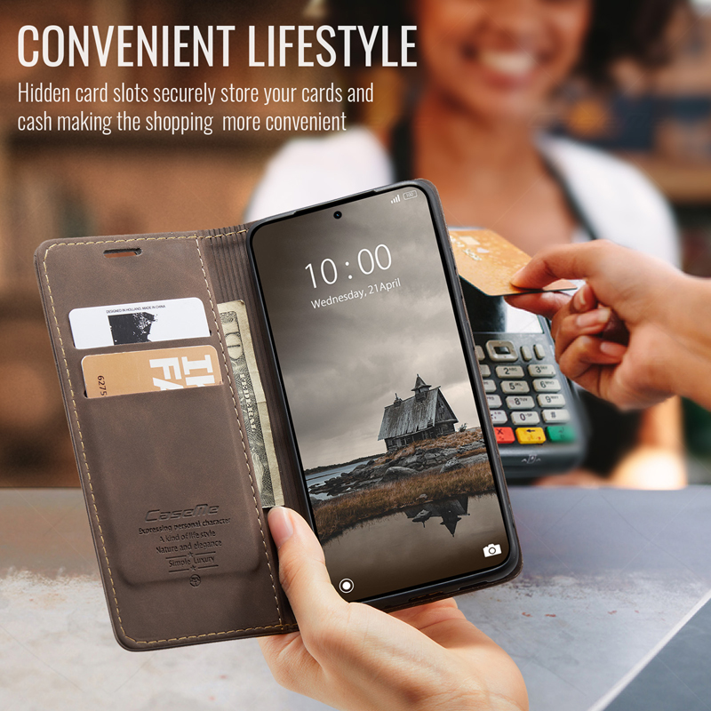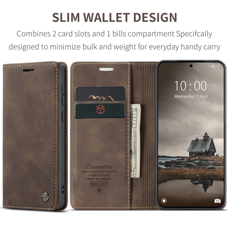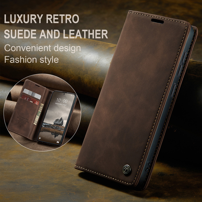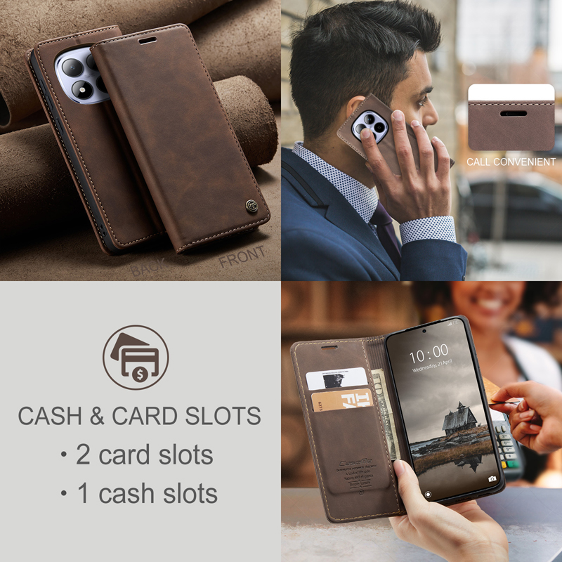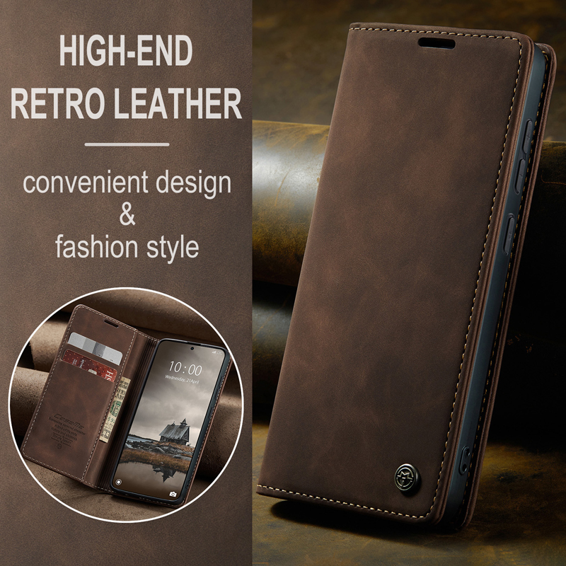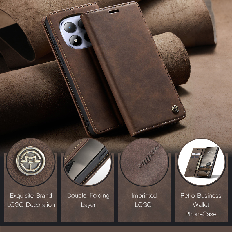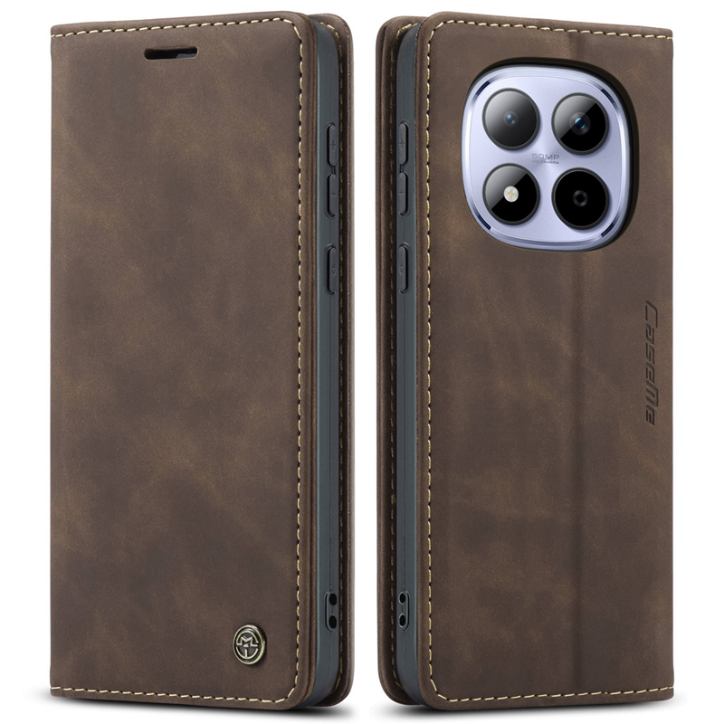 CaseMe-013 TPU Business Style Vintage Matte Horizontal Flap Leather Case for Xiaomi Redmi Note 15 Pro 4G Coffee