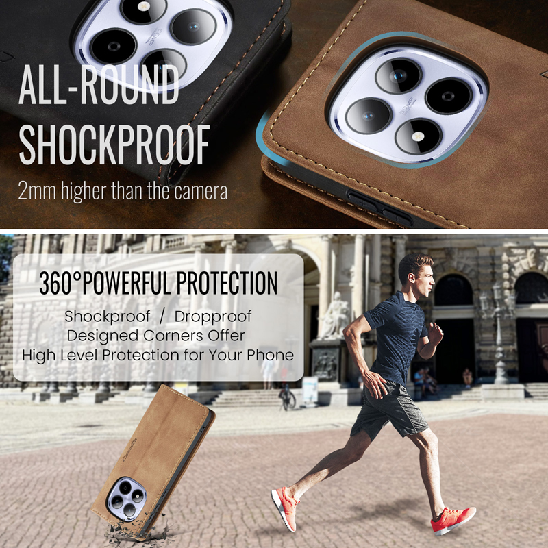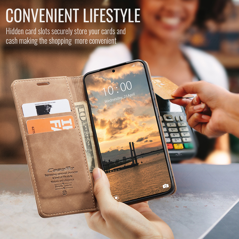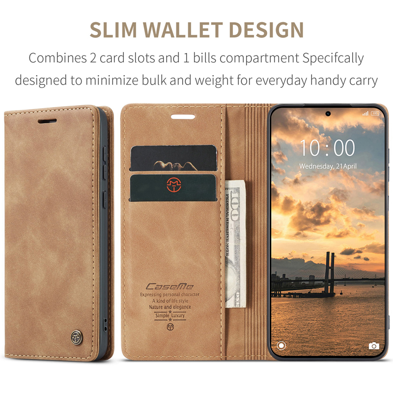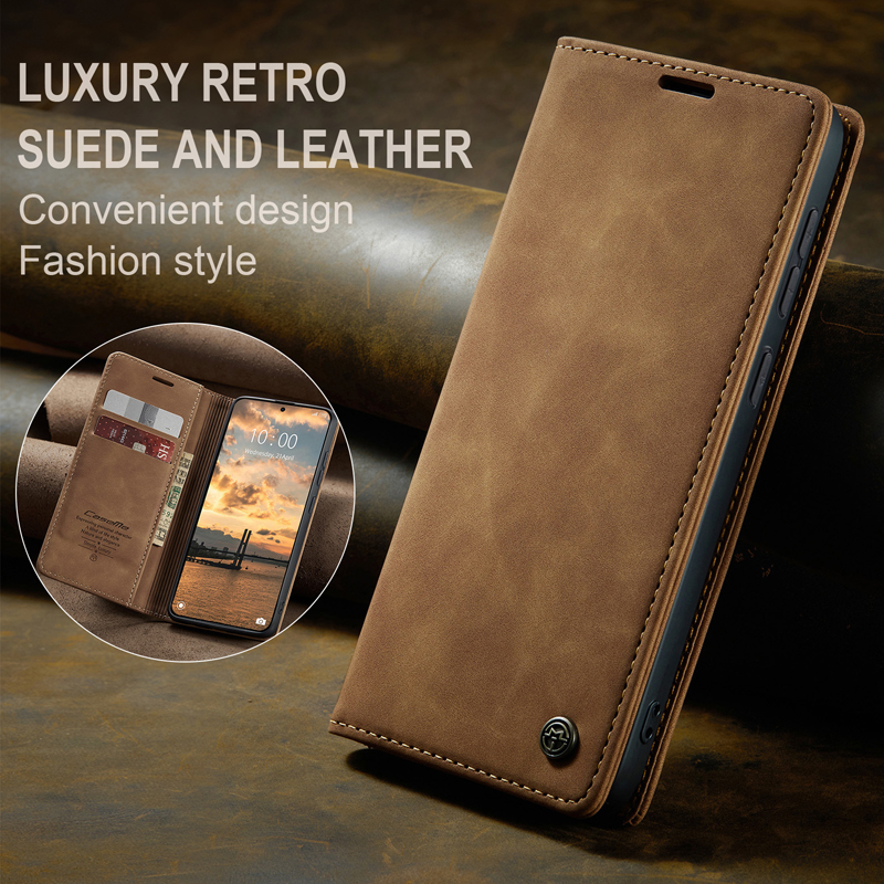 - CaseMe-013 TPU Business Style Vintage Matte Horizontal Flap Leather Case for Xiaomi Redmi Note 15 Pro 5G Brown