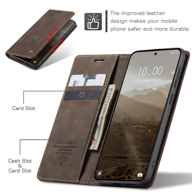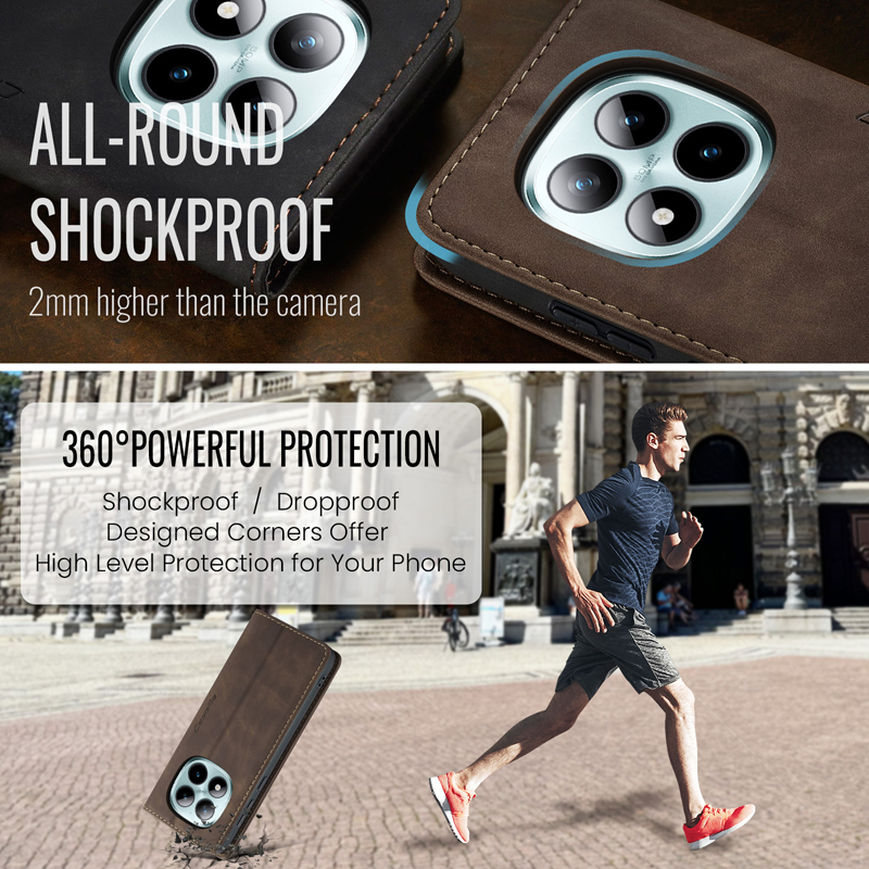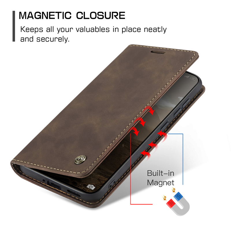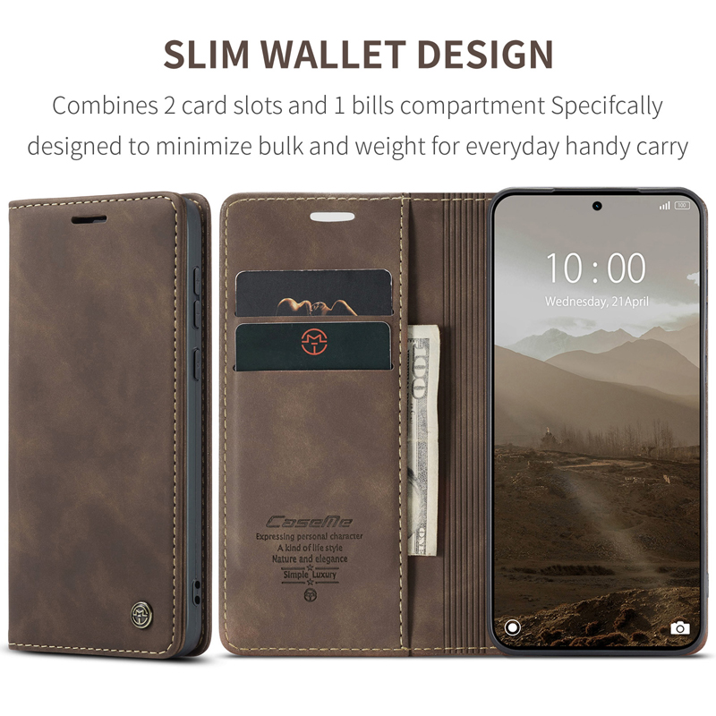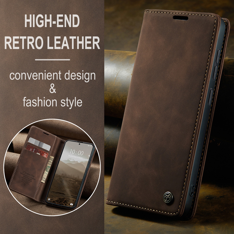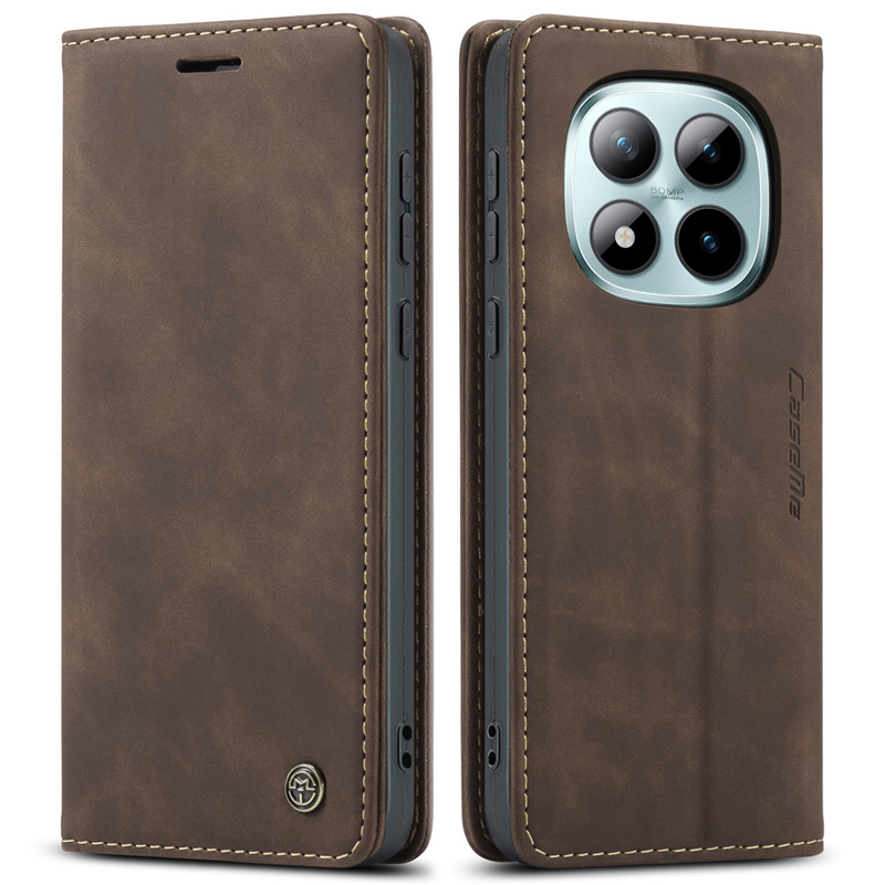 - CaseMe-013 TPU Business Style Vintage Matte Horizontal Flap Leather Case for Xiaomi Redmi Note 15 Pro+ 5G Coffee