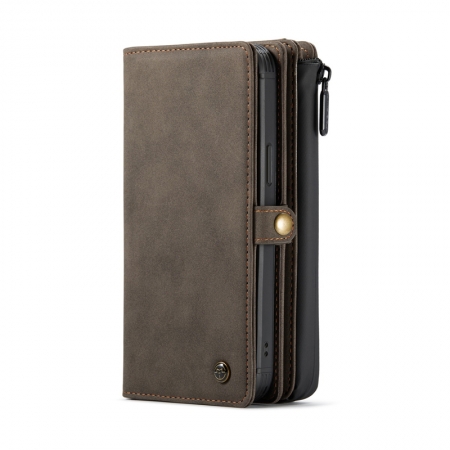 CaseMe-018 2 in 1 Leather Detachable Wallet Case for iPhone 12 Mini Brown