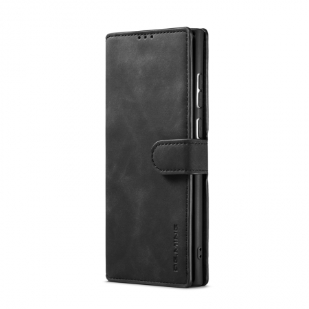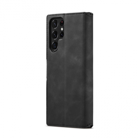 DG.MING Retro Oil Side Horizontal Flip Case for Samsung Galaxy S22 Ultra 5G Black