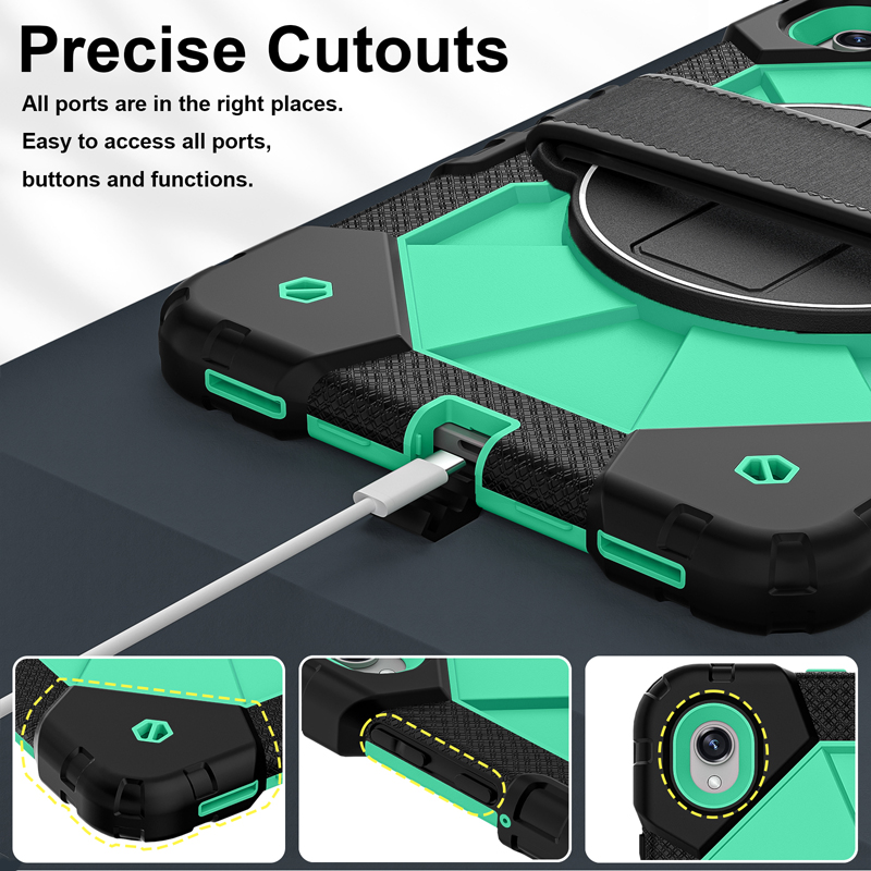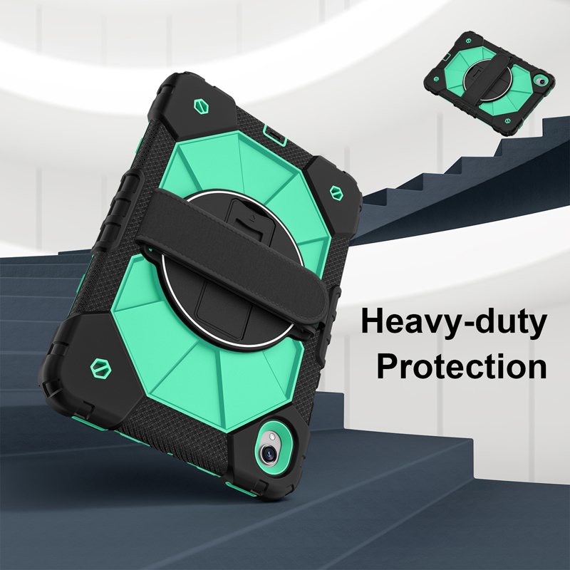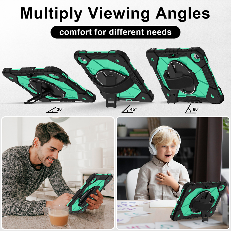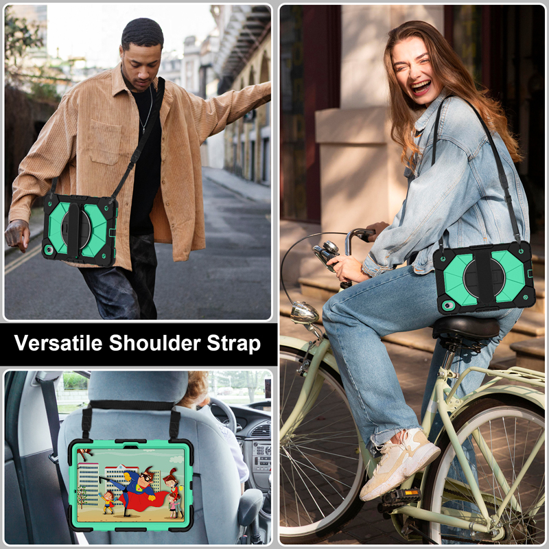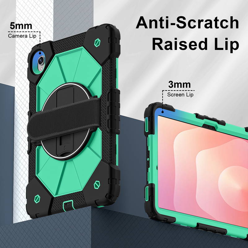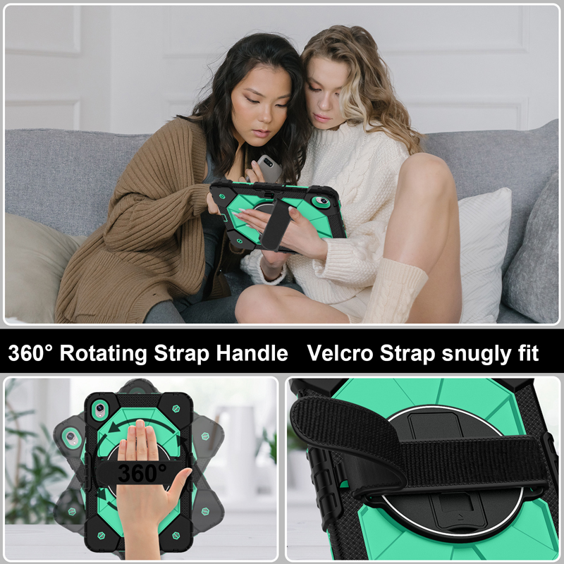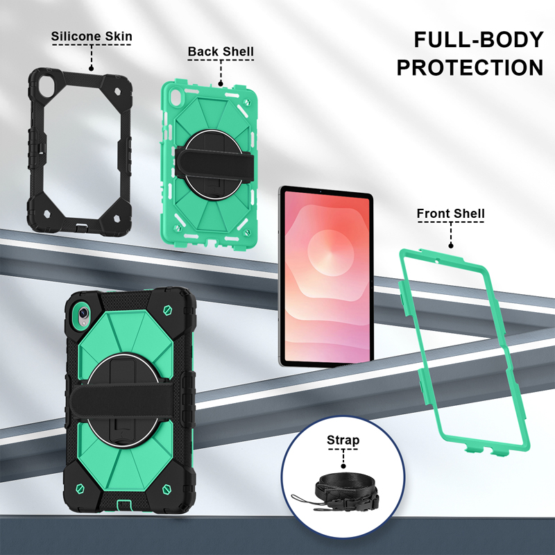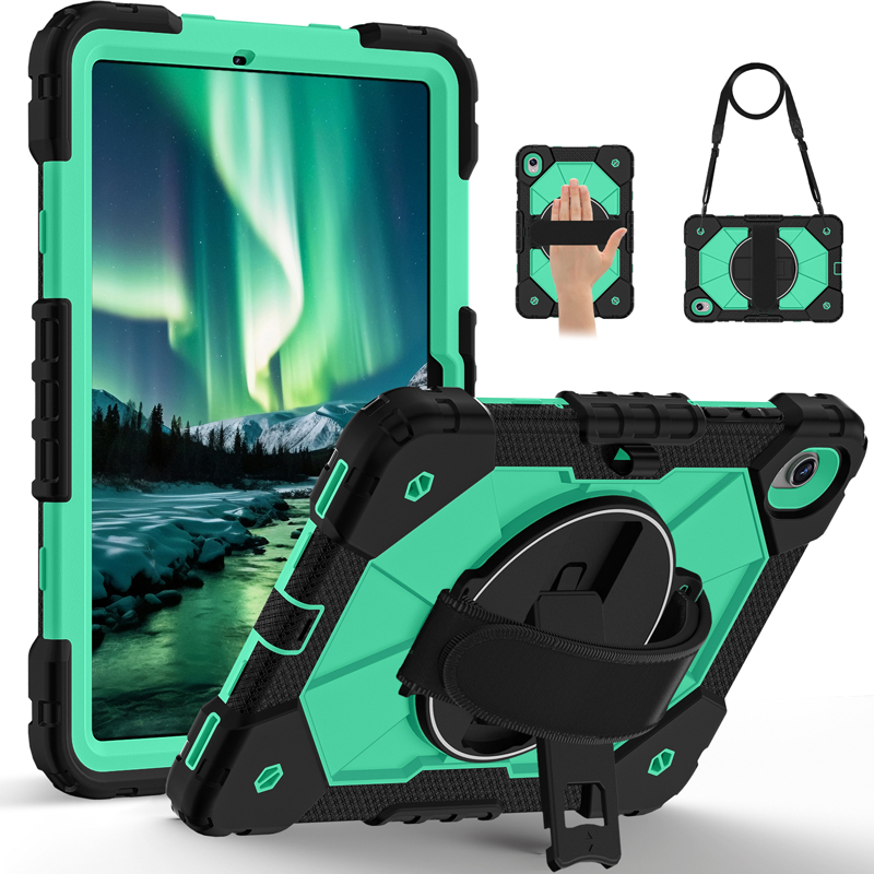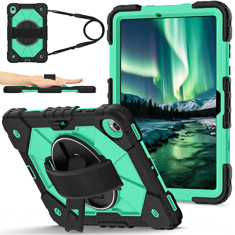 Dual Color Robot TPU Shock Absorbing Case with Shoulder Belt Grip Cover for Samsung Galaxy Tab S11 X730/X736 Black+Aqua