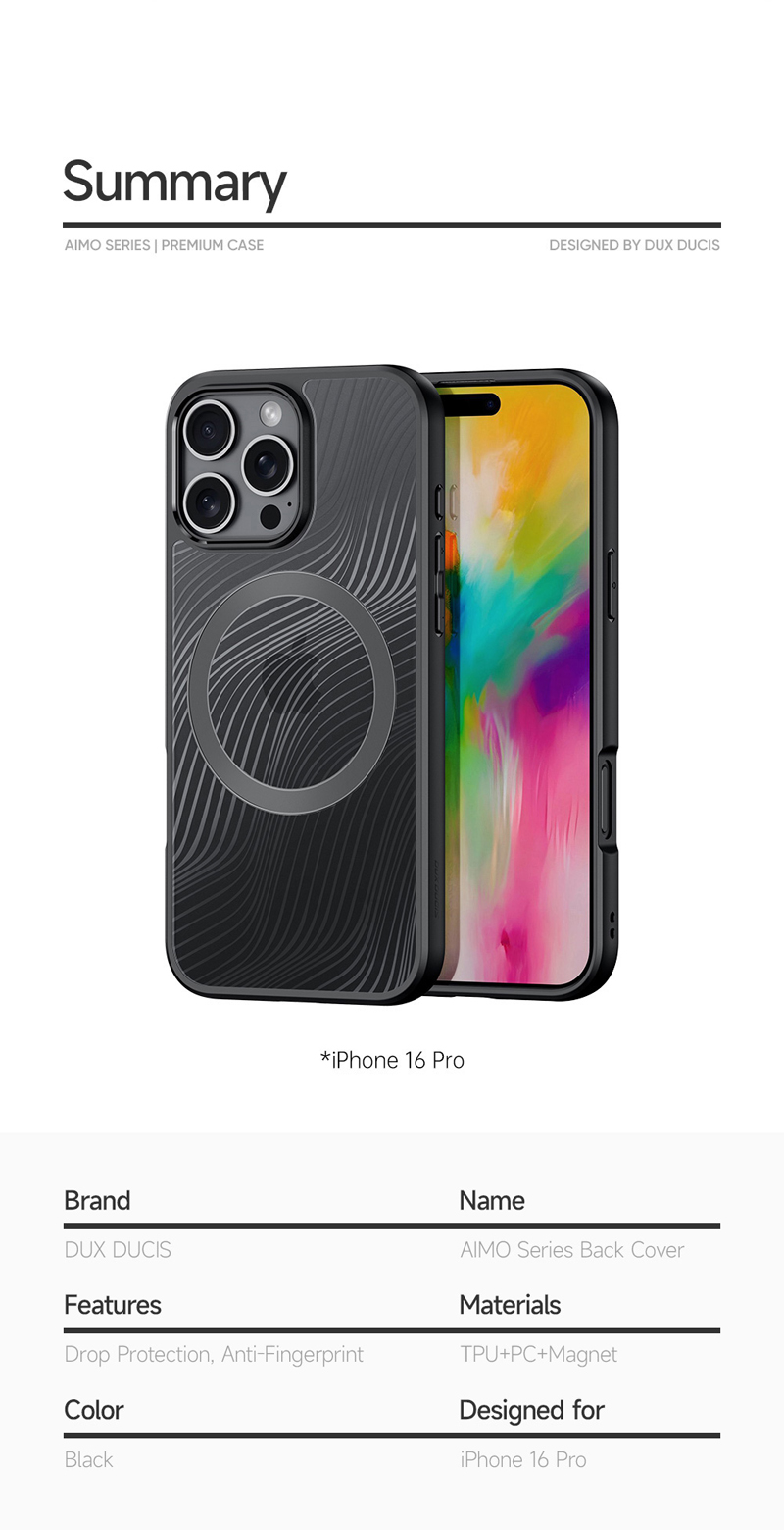 - DUX DUCIS Aimo Mag Series Magnetic Matte Anti-drop TPU + PC Case for iPhone 16 Pro Black