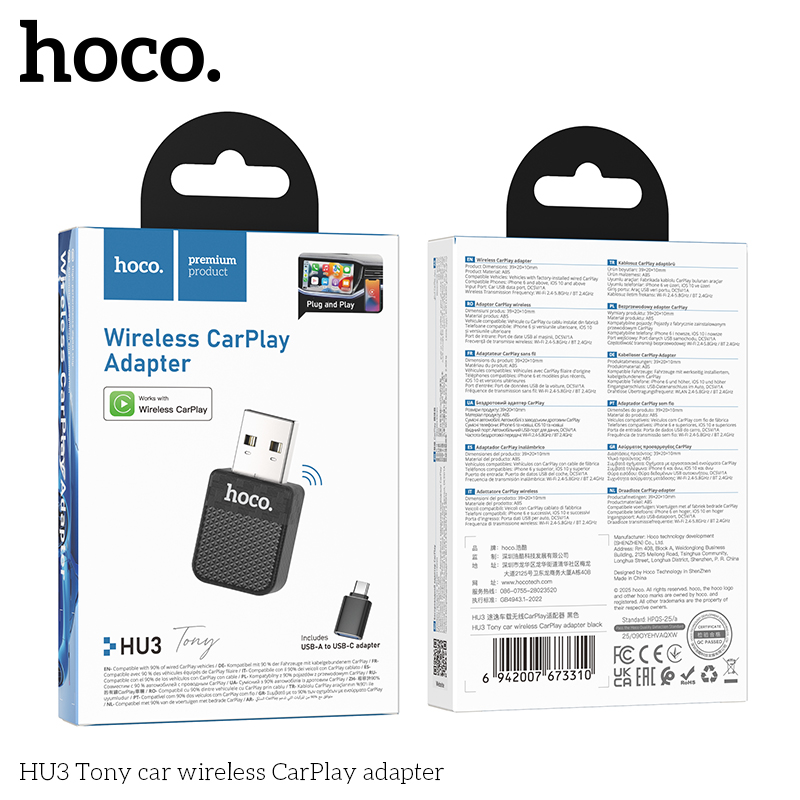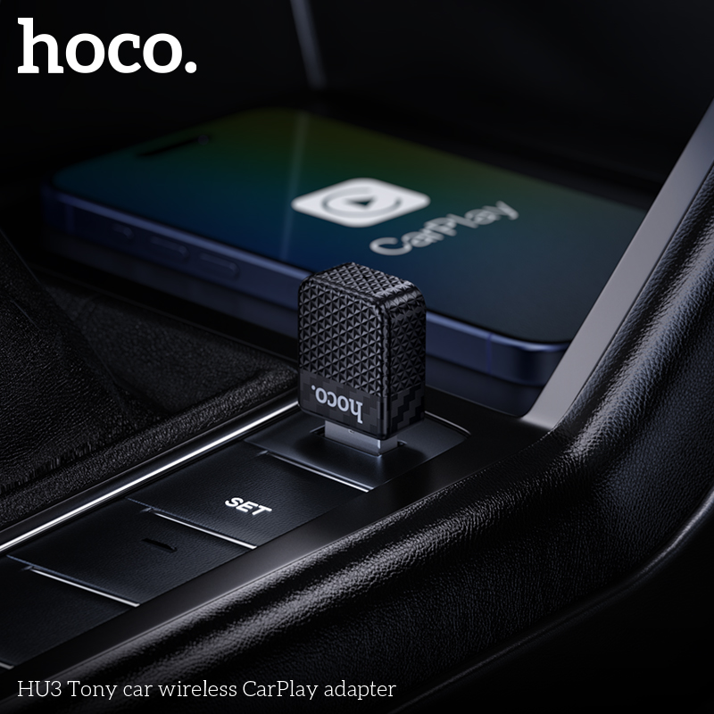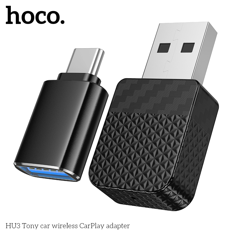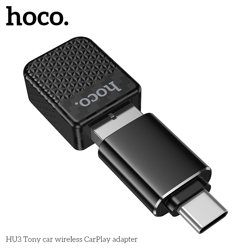 HOCO HU3 Tony Car Wireless CarPlay Adapter with USB to Type-C Adapter Black