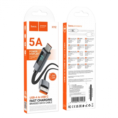 HOCO X112 5A 1M USB to Type-C Favor Screen Display Charging Data Cable Black