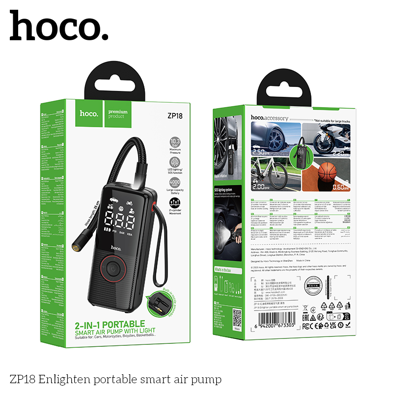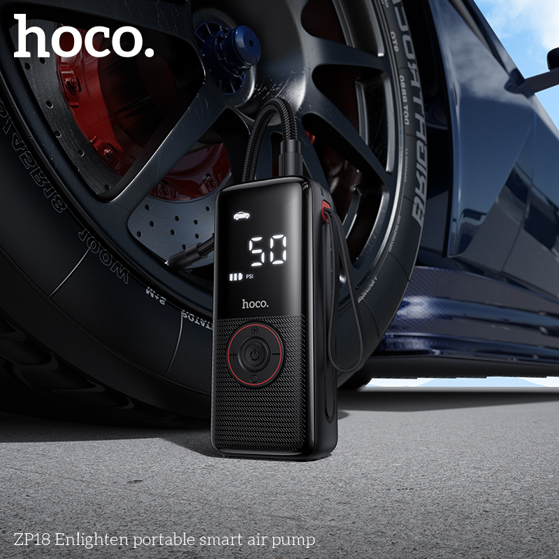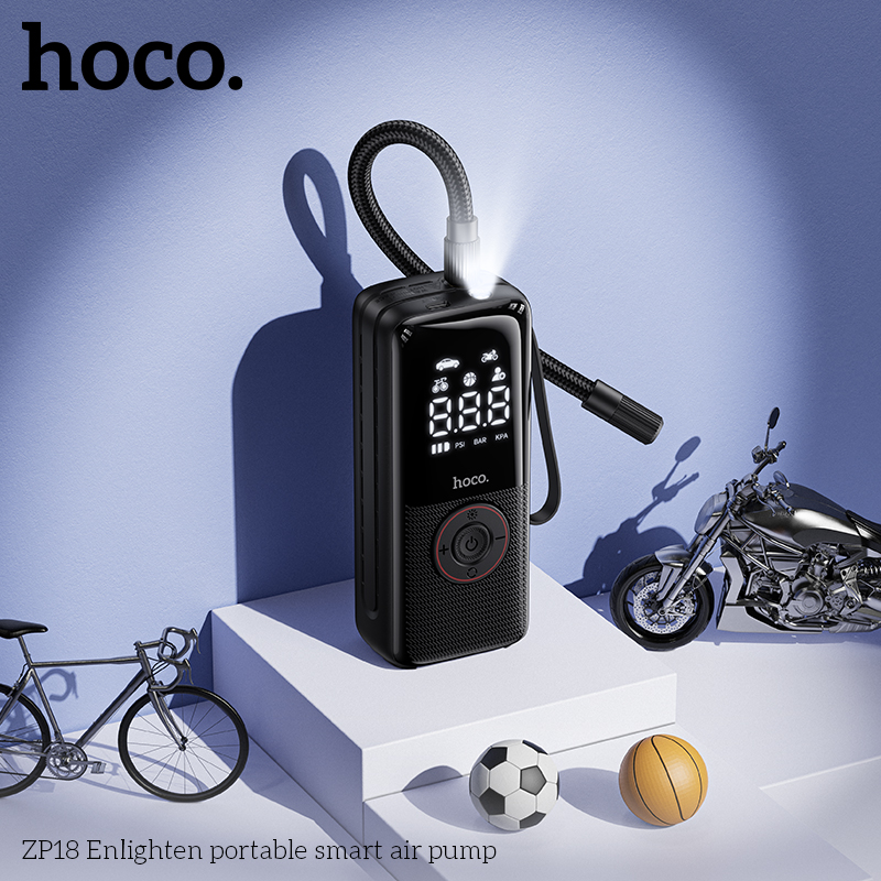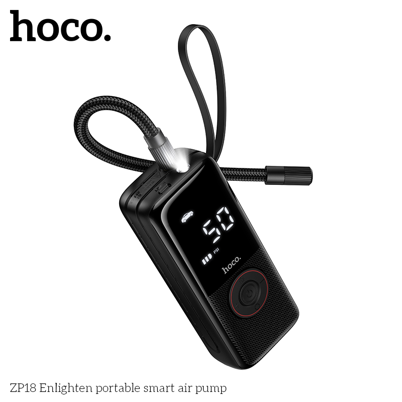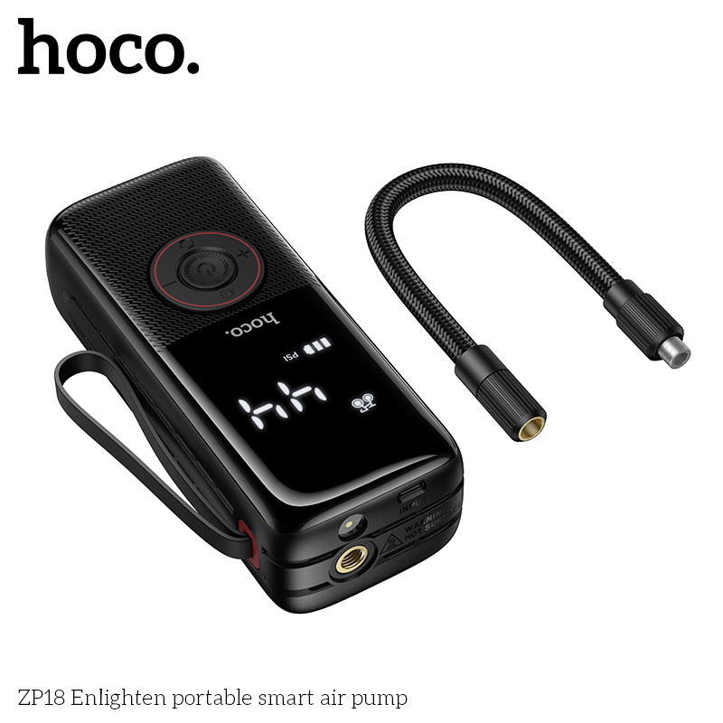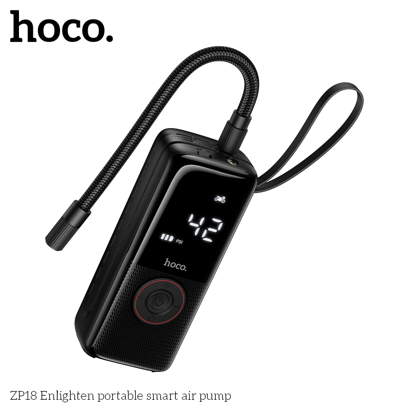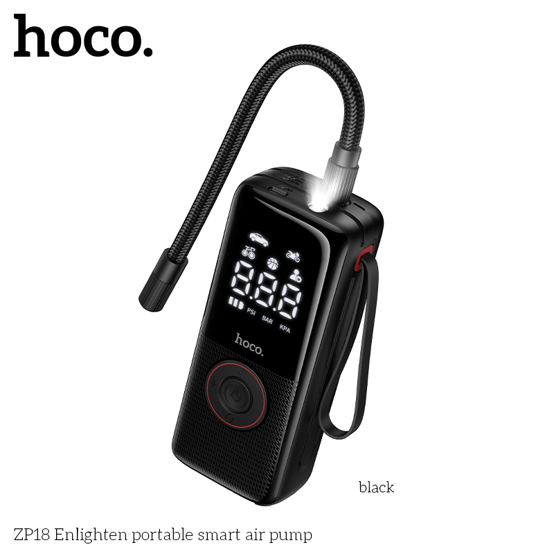 HOCO ZP18 Enlighten Portable Smart Air Pump With Trachea Black