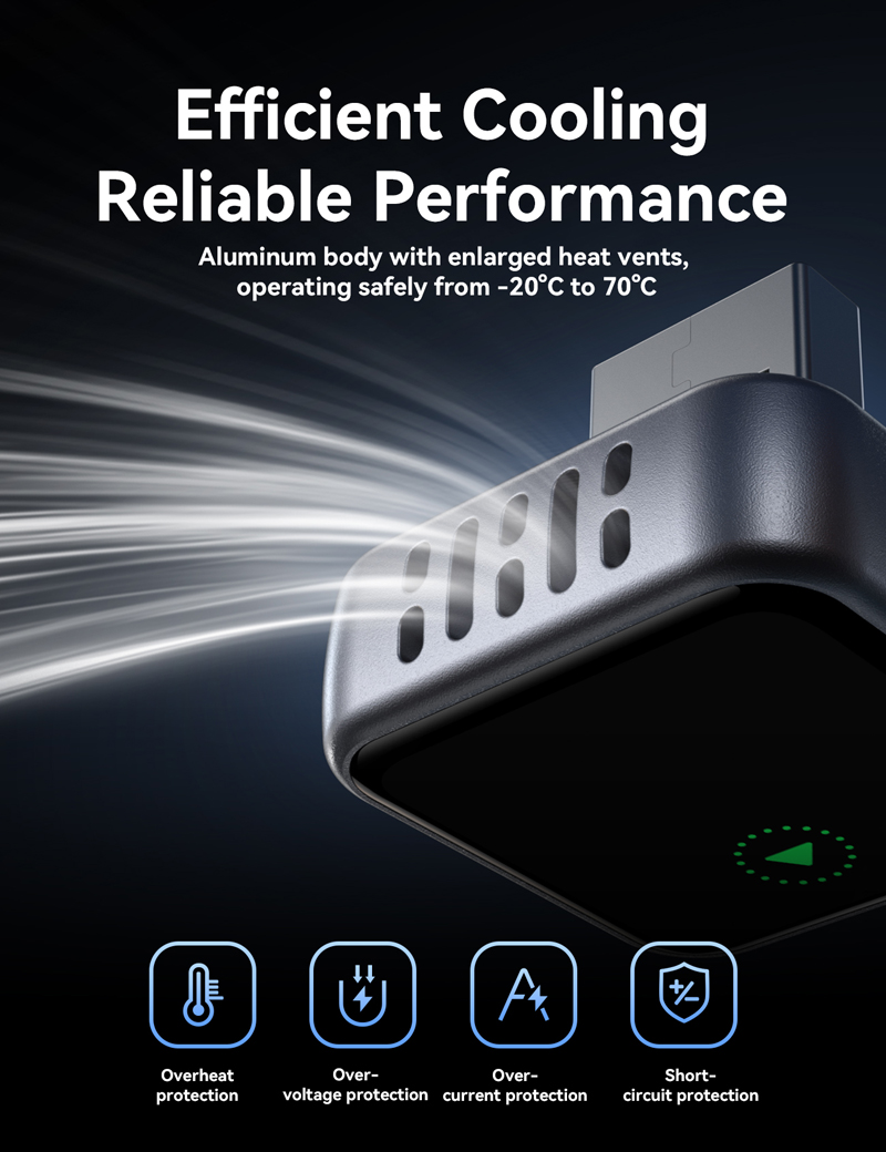 4. Efficient heat dissipation and smart temperature protection, operating from -20°C to 70°C