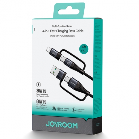 JOYROOM SA37-2T2 1.2M 60W USB-A+Type-C to Lightning+Type-C Multi-Function Series 4 in 1 Fast Charging Data Cable Black CE/ROHS Certified