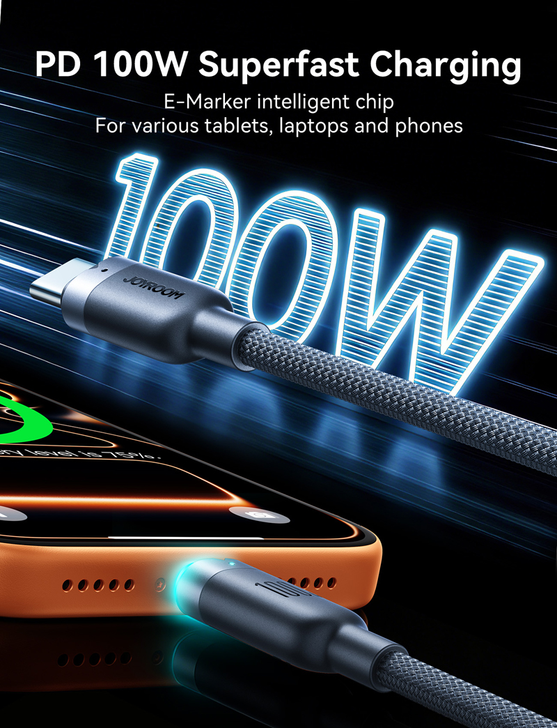 JOYROOM S-A63 100W 1.2M Type-C to Type-C StarWay Series Auto Power-Off Fast Charging Data Cable Black CE/ROHS Certified