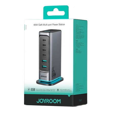 JOYROOM TCM02 65W GAN 4*Type-C+2*USB Multi-port Charger Dark Gray EU Plug CE/ROHS Certified