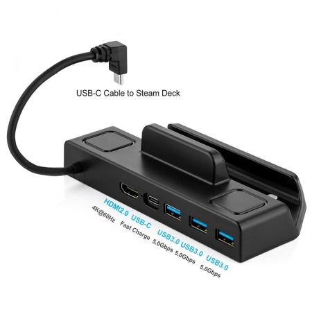JZ32 5 in 1 Steam Deck Non-Slip Docking Station with HDMI 4K@30Hz+3*USB 3.0+Type-C PD Charging Port Black
