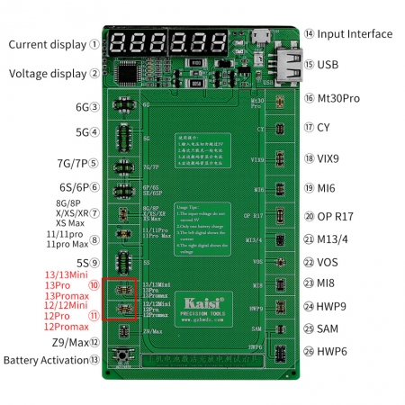 KAISI K-9208 2022 Version Activated And Charging Jig Of Mobile Battery Instruction New Support iPhone 13 Series