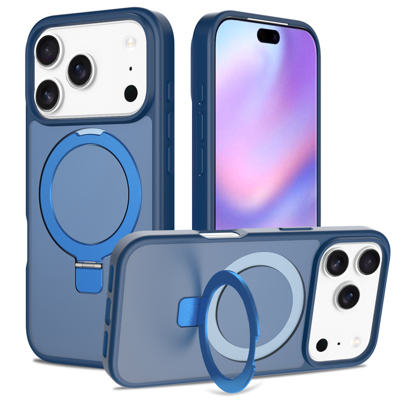 - Liquid Silicone Skin Feel Magnetic Anti-drop Case with Stand for iPhone 17 Pro Blue