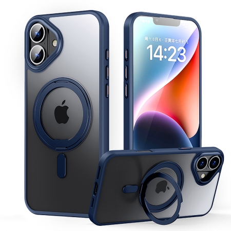 - Magnetic Duty Shockproof Slim Case with 360° Spin Stand for iPhone 16 Blue