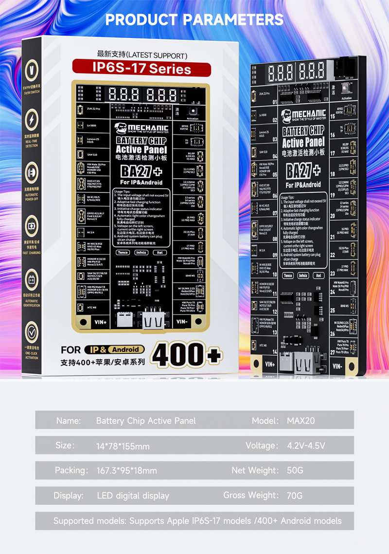 QIANLI MEGA-IDEA iCharger V1.4 Battery Charging Activation Test Board for iPhone 6-16Pro Max/Android