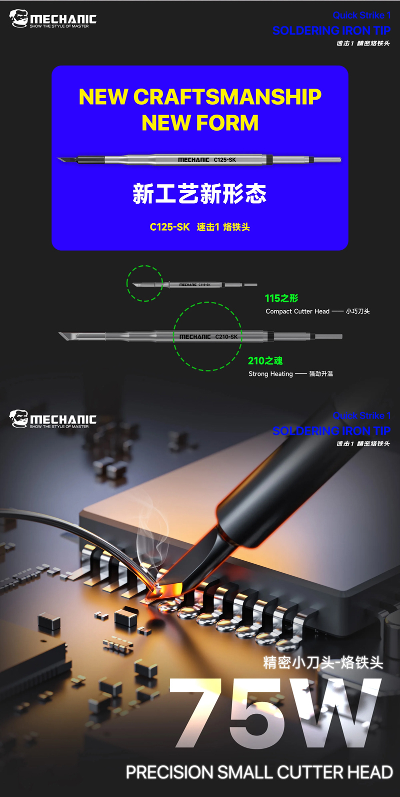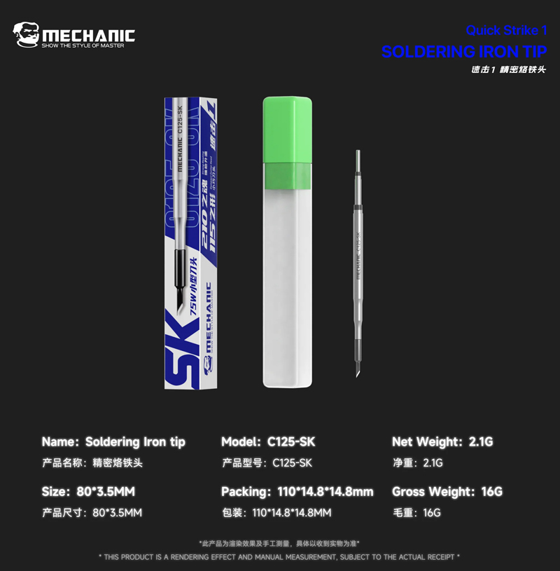 Mechanic C125-SK Strike1 75W Precision Small Cutter Head Soldering Iron Tip for C210 Handle