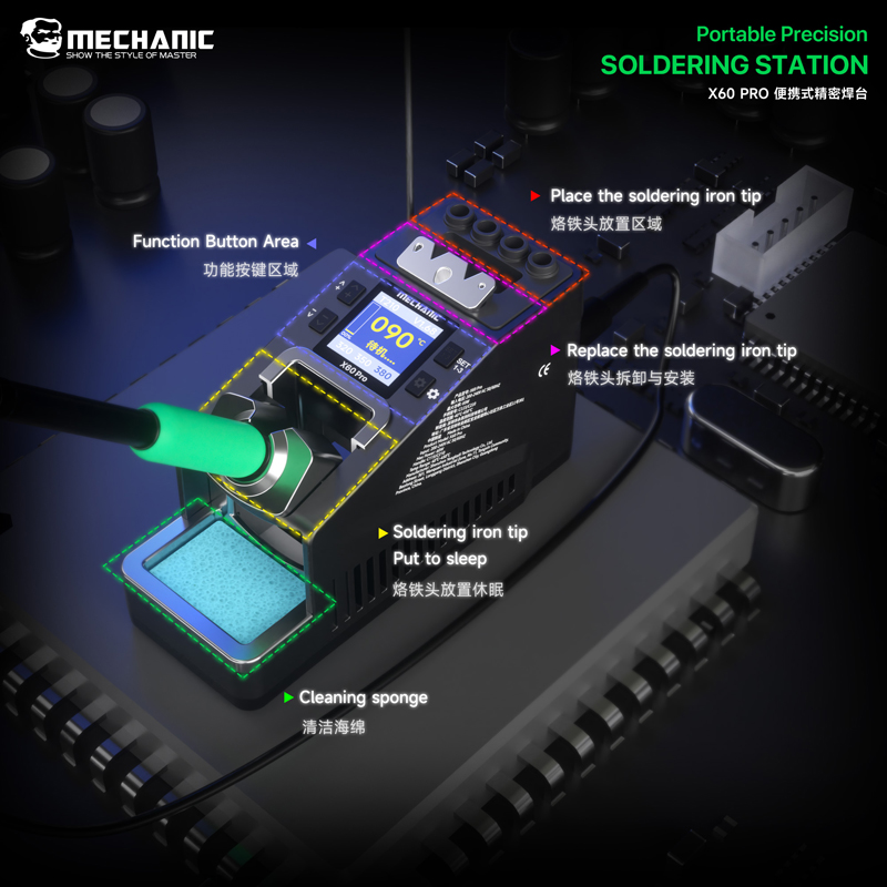 Mechanic X60 Pro Portable Precision Soldering Station with 210 Handle + 210 Heating Core for 210/115 Handle 220V EU Plug
