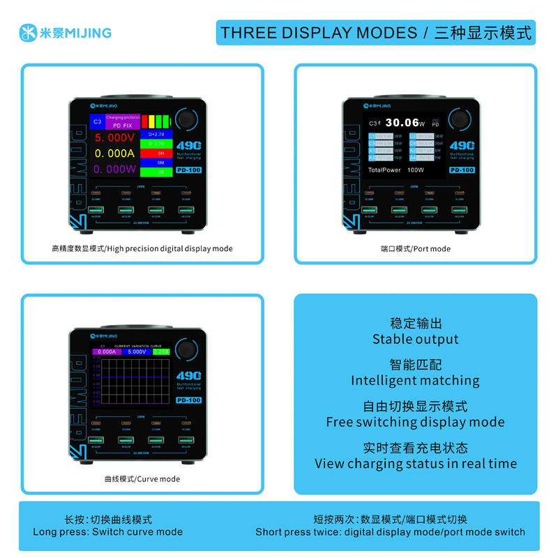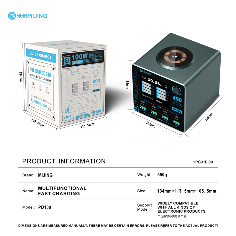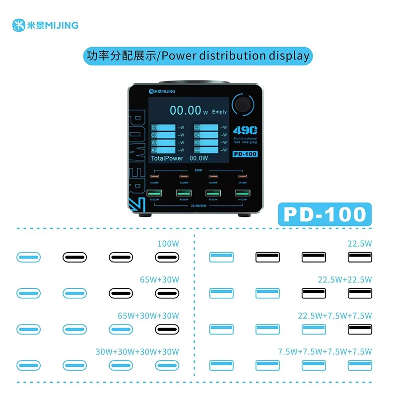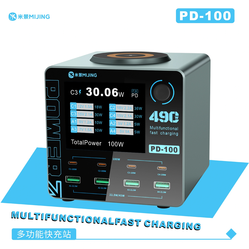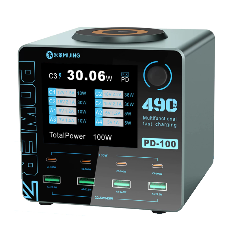 MiJing PD100 8 Port 100W Multfunctioinal Fast Charging Station with 15W Wireless Charging 220V EU Plug
