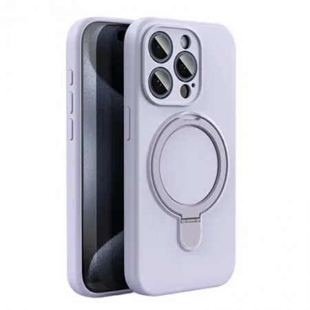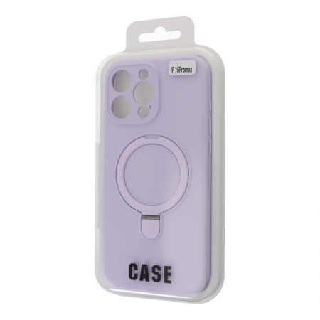 - Pure Color MagSafe Liquid Silicone Case with Stand Cover for iPhone 16 Pro Max Purple without Logo
