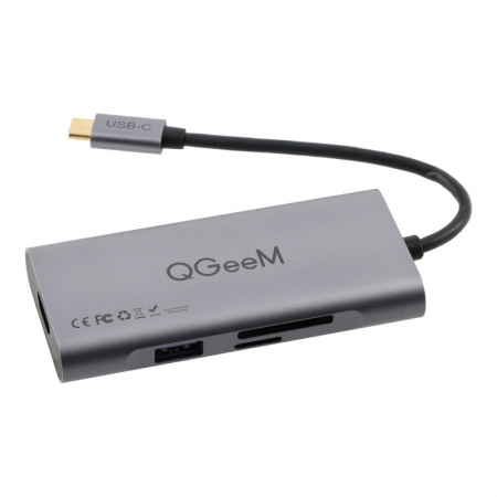 QGeeM 7 in 1 100W Type-C Hub to HDMI 4K/USB 3.0*3/Type-C/SD/TF Card Readers Adapter