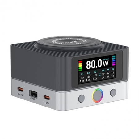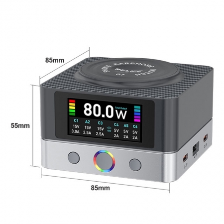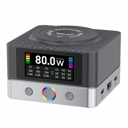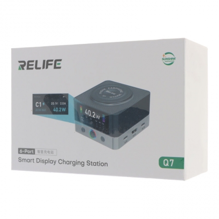 RELIFE Q7 80W 6-Port HD Color Screen Intelligent Charger with 15W Wireless Charging EU Plug