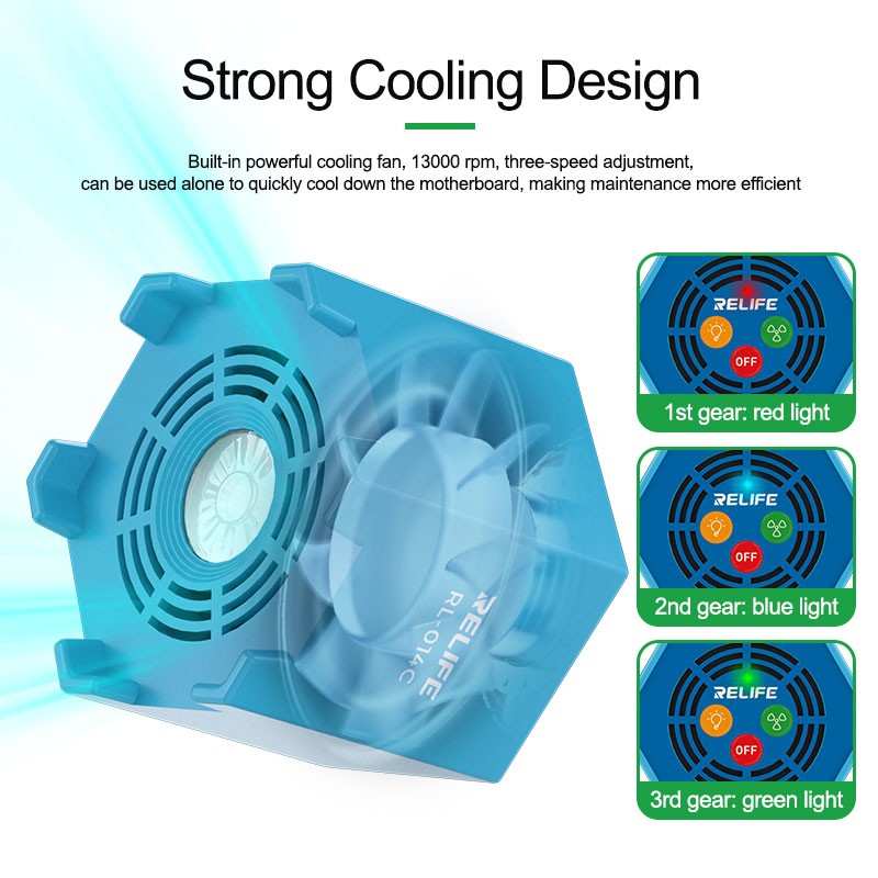 RELIFE RL-014C 2 in 1 Smart Cooling Air Fan + UV Curing Light for Motherboard Repair