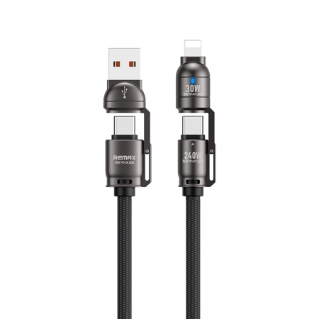 REMAX 240W 1.2M USB+Type-C to Lightning+Type-C Vanguard Multifunctional Zinc Alloy Braided Charging Data Cable Black
